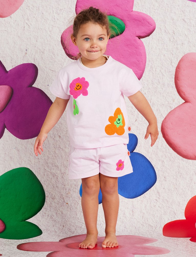 Features an elasticised waist and our boucle applique Hej Blomma! motifs.