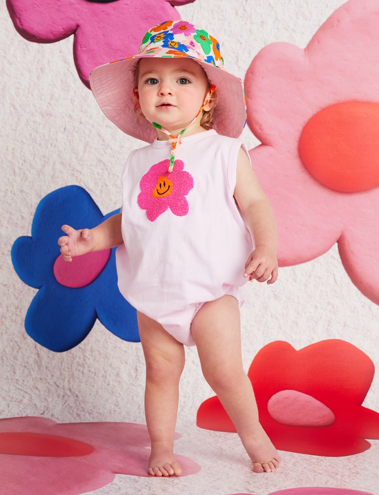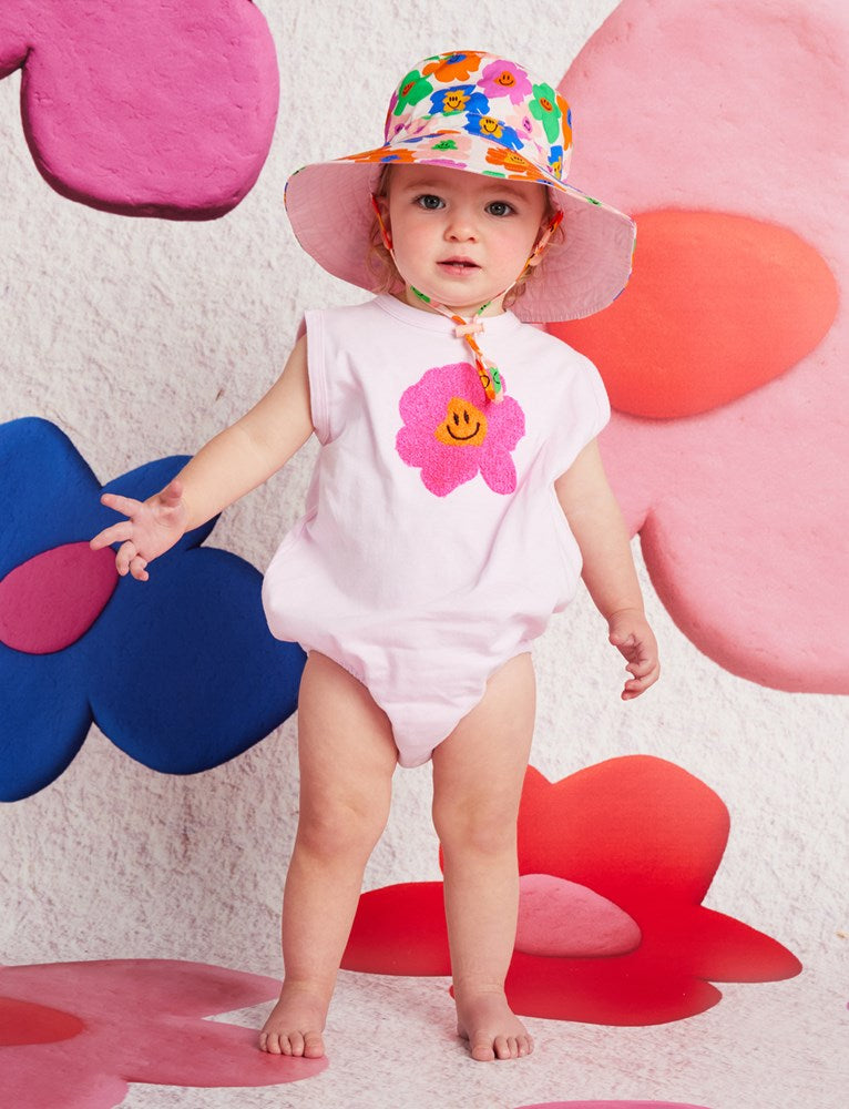 Get ready to embark on a playful adventures with our Hej Blomma! Singletsuit.
